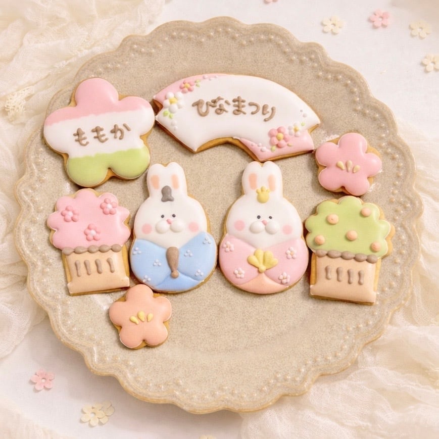 庄内産米粉を使用したひなまつり限定デザインのアイシングクッキーセットです。